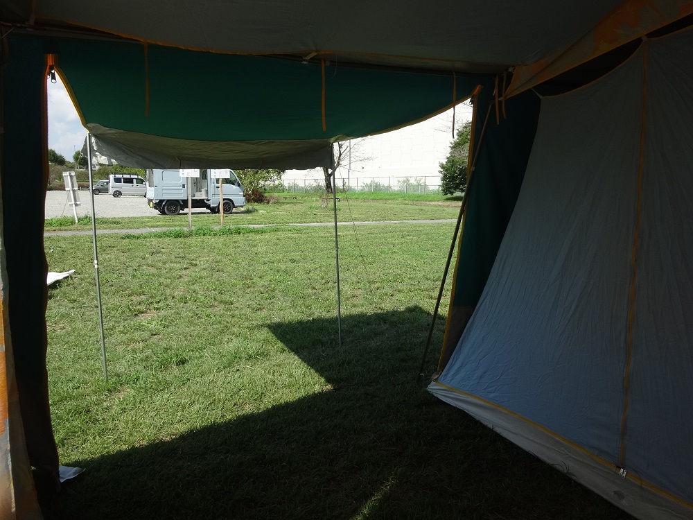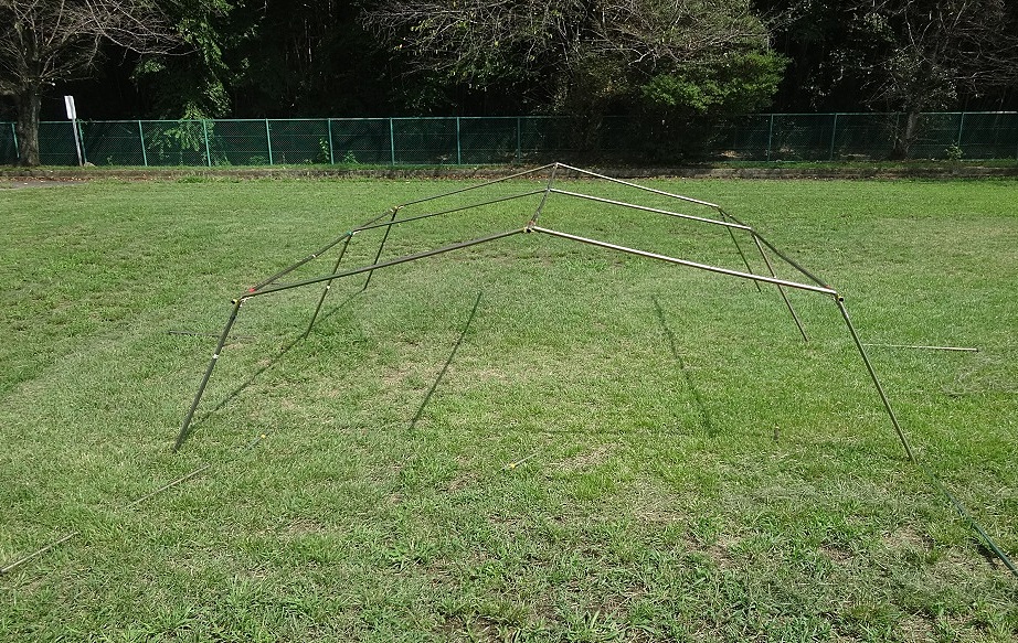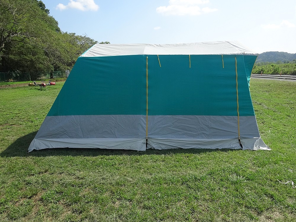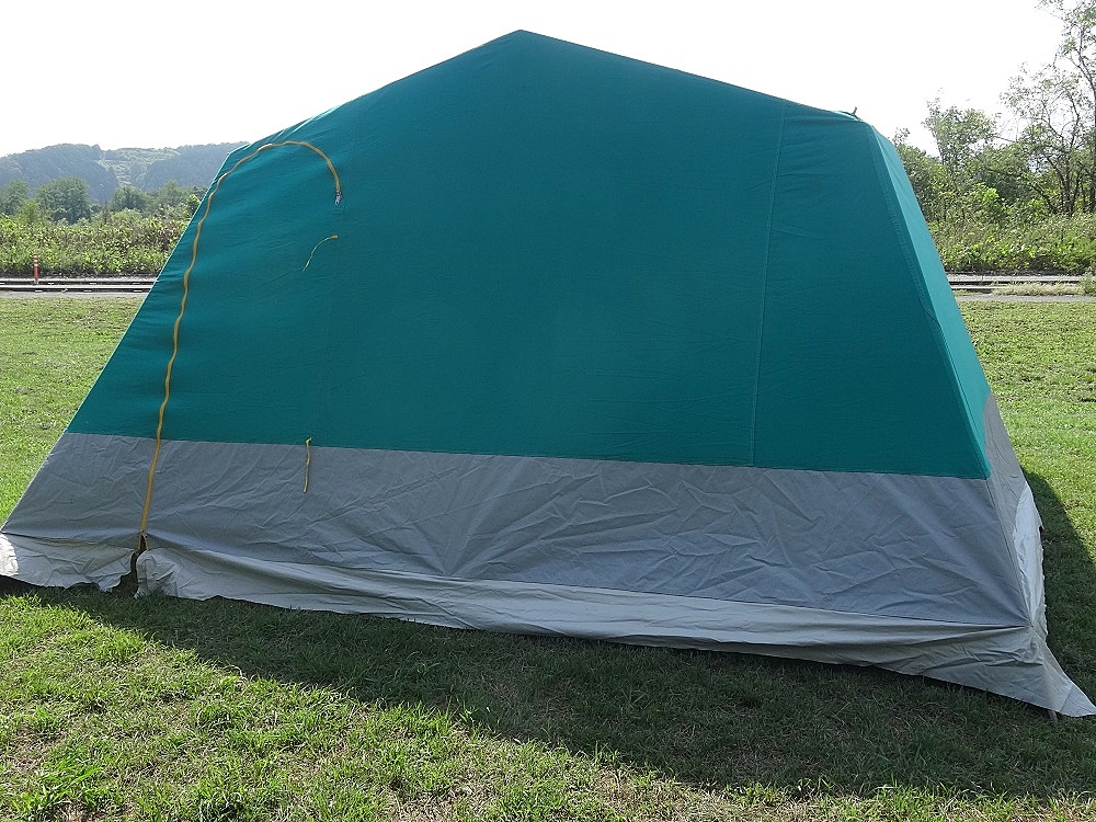 大きさ的には通常は6人用テントの大きさですが、後方にも出入口があるタイプで、インナーテントが片側4人用となり後方出入口付近は通路&キッチンスペースとして利用するモデルになります。