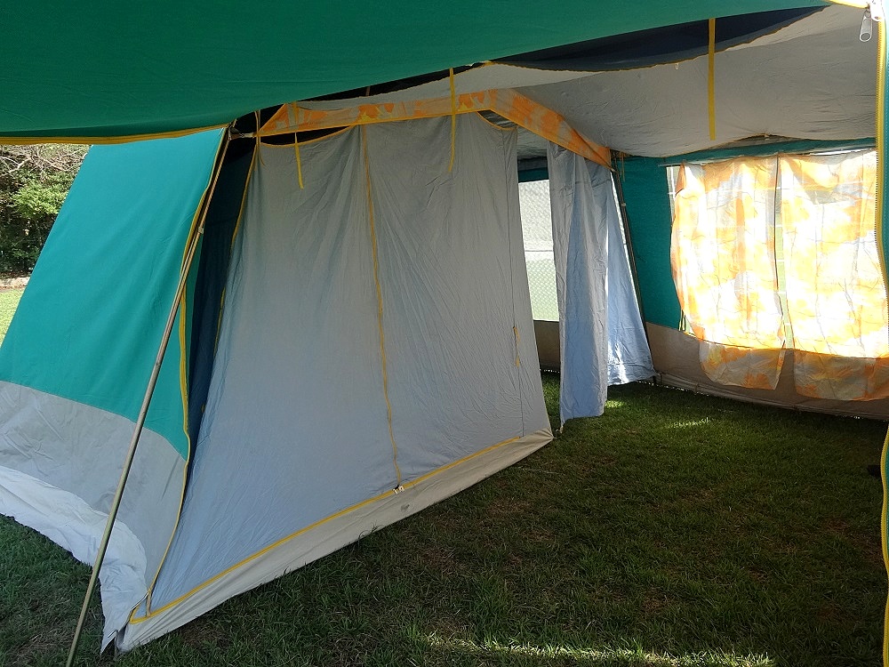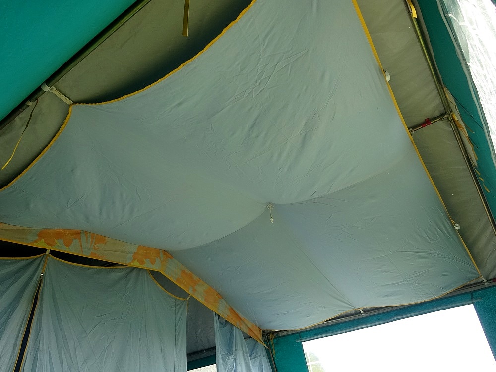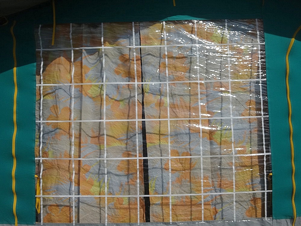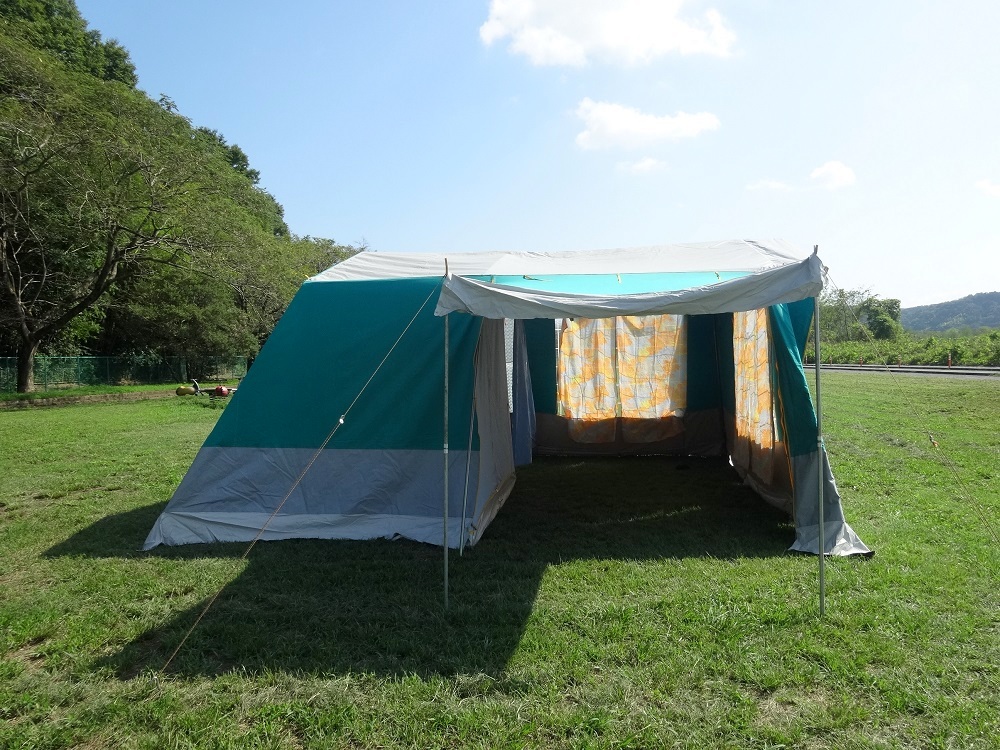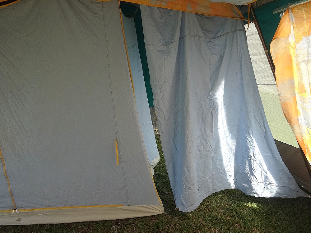 カーテンはパステルカラーの花柄生地で、おそらく80〜90年代前半のテントと思われます。