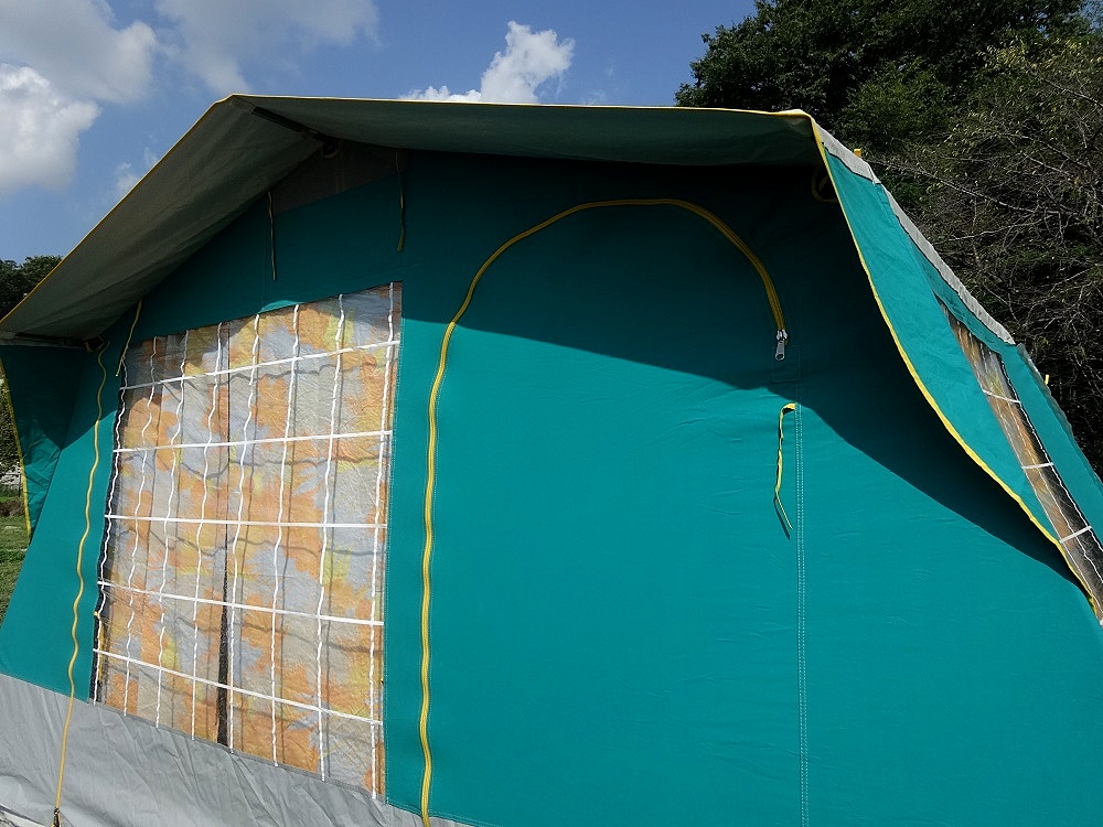緑に映えるとても綺麗な鉄骨幕で、人気のマルシャル・ルベロン! 鉄骨幕の魅力が全部そろったコットンテントです。